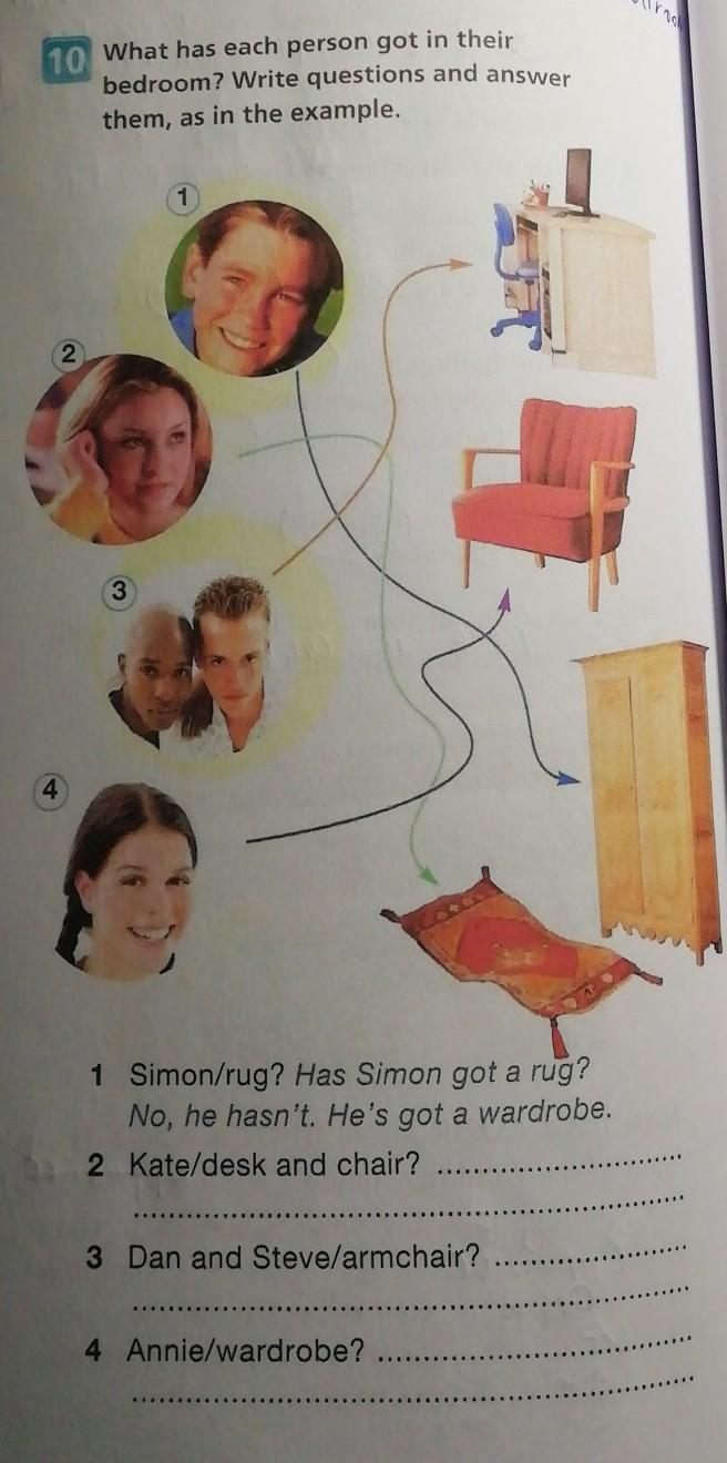 Ответ: 2. Has Kate got a desk and chair?