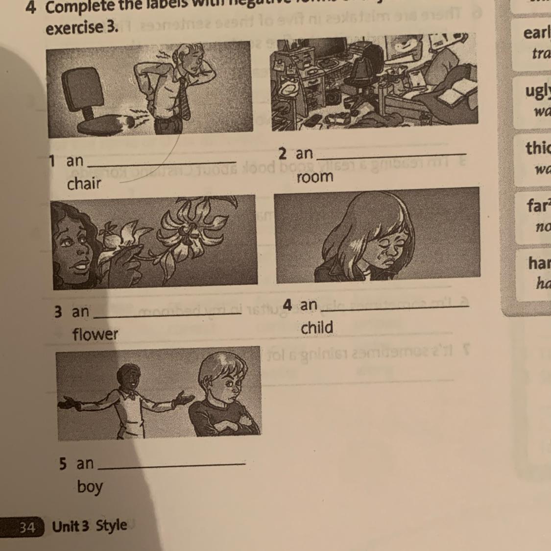 4 Complete the labels with negative forms of adjectives from