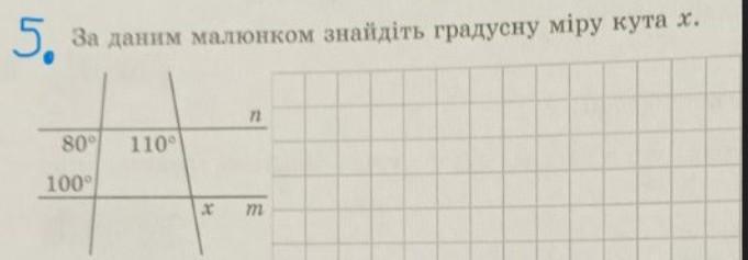 Звідси кут х є відповідним до кута, який суміжний з кутом 110 градусів. Сума суміжних кутів дорівнює 180 градусів.