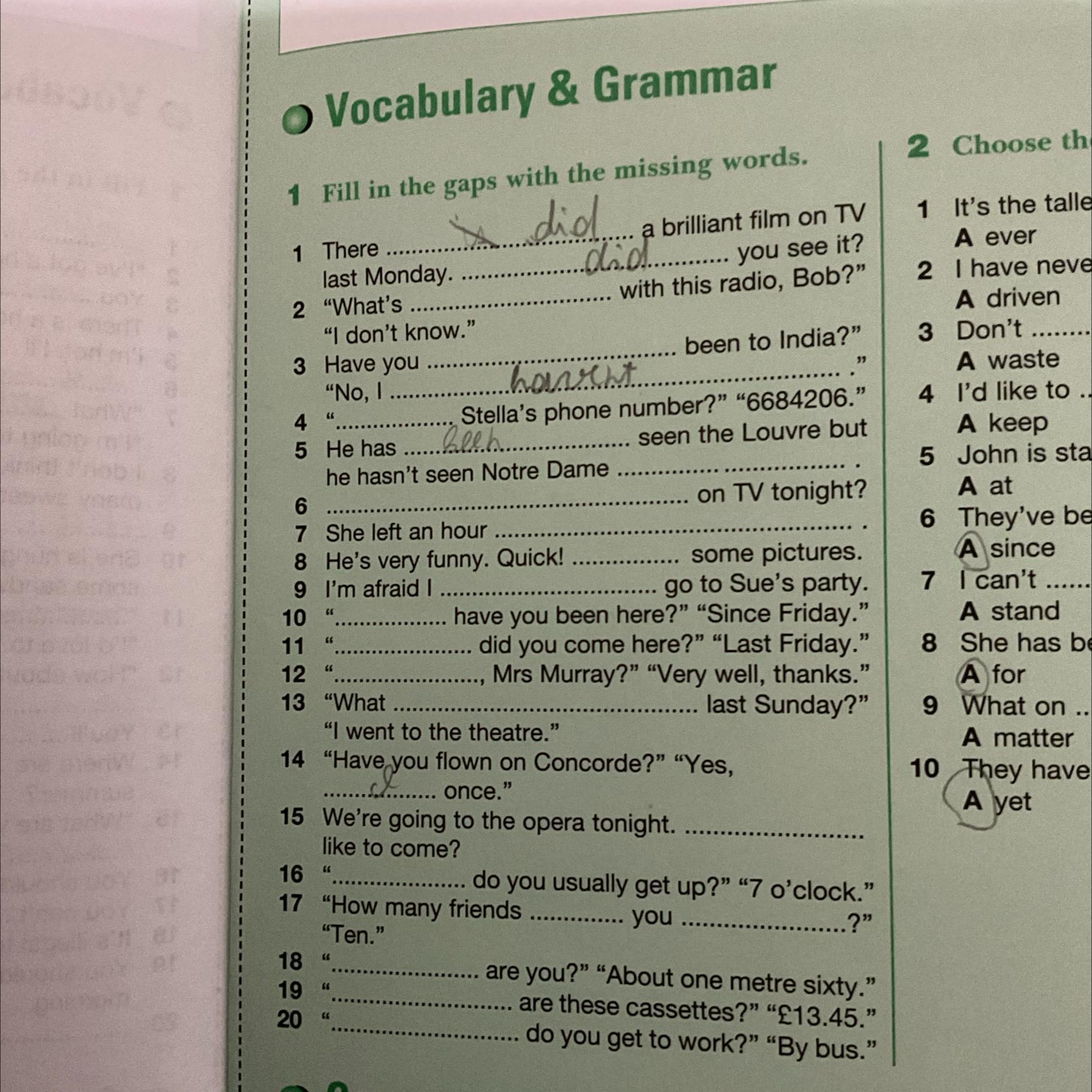 1 Fill in the gaps with the missing words.