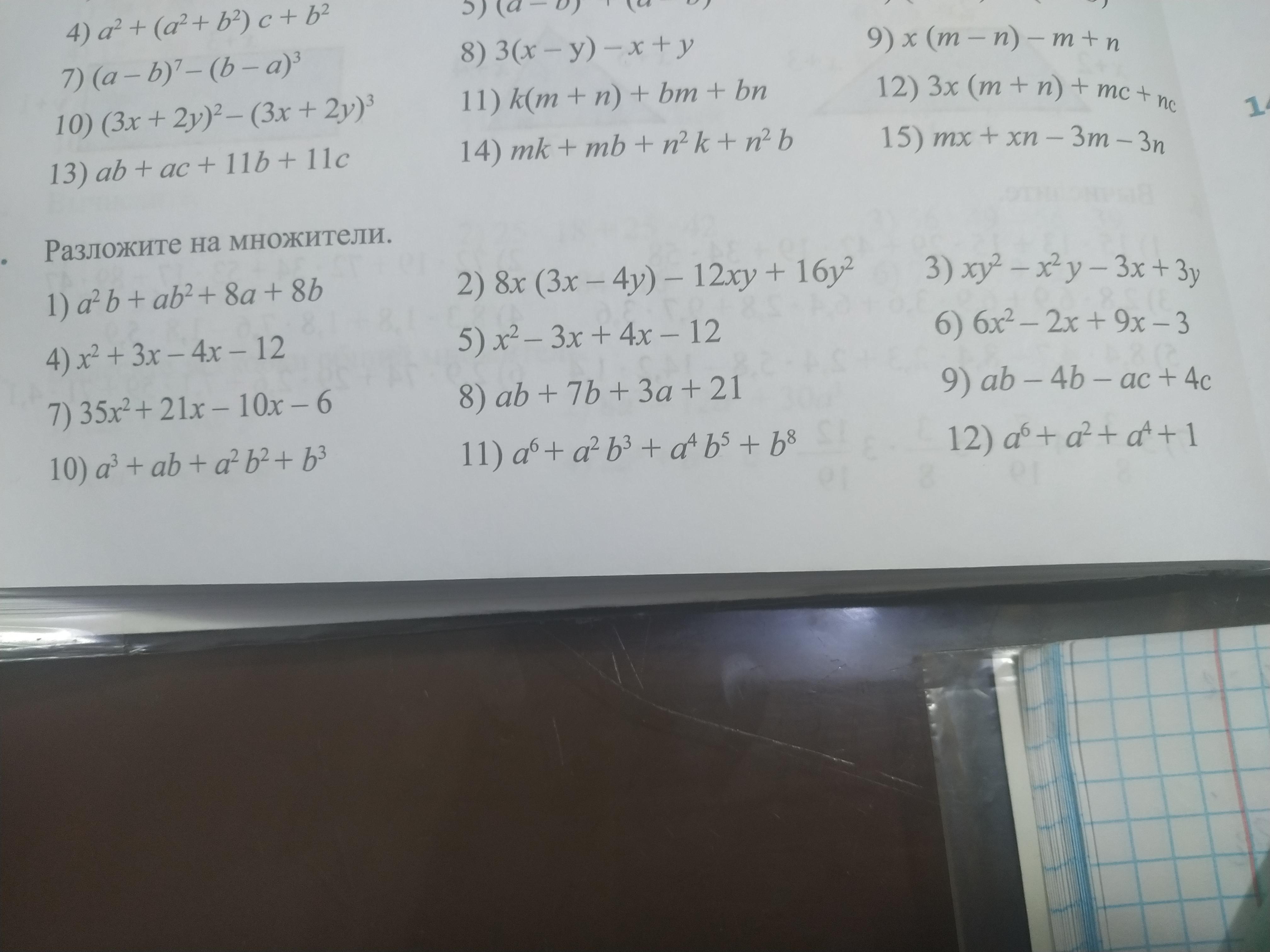 12) a⁶+a²+a⁴+1=a²(a⁴+1)+1(a⁴+1)=(a²+1)(a⁴+1);