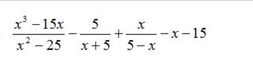 к первой дроби множитель-1,ко второй- x-5,к третьей- x+5,к иксу- x^2-25, к пятнадцати - x^2-25