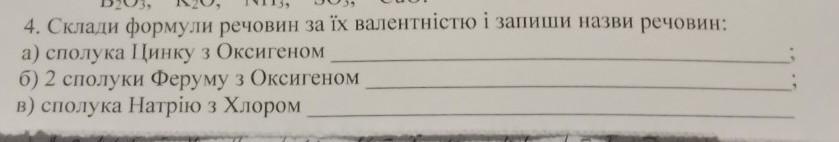 4. Склади формули речовин за їх валентністю і запиши назви речовин: