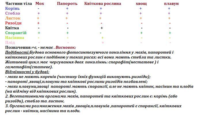 ВИЩИХ СПОРОВИХ РОСЛИН : Порівняння будови мохів, плаунів, хвощів і папоротей. Тема
