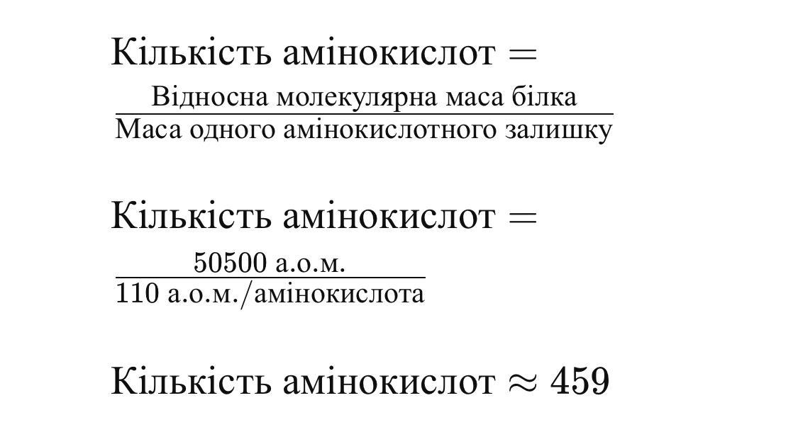 Відносна молекулярна маса молекули білка становить 50500 а.о.м. Визначте кількість амінокислот, з яких складається білок.