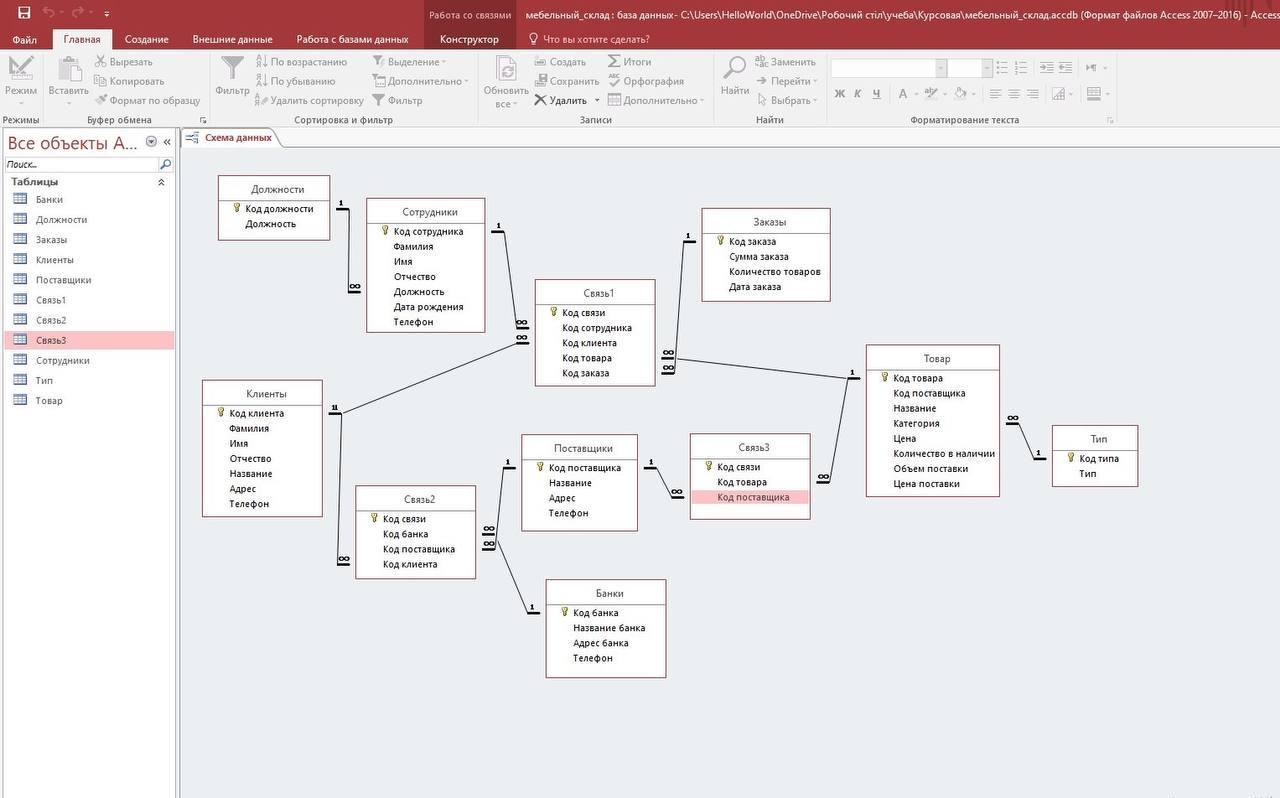 Вопрос по предмету "Базы данных". Скажите, пожалуйста, правильно ли сделана схема? Находится ли БД в 3НФ? Есть ли замечания? Предметная область "Склад мебели"