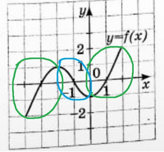 x ∈ (-2; 0); (позначено блакитним на фото 2)