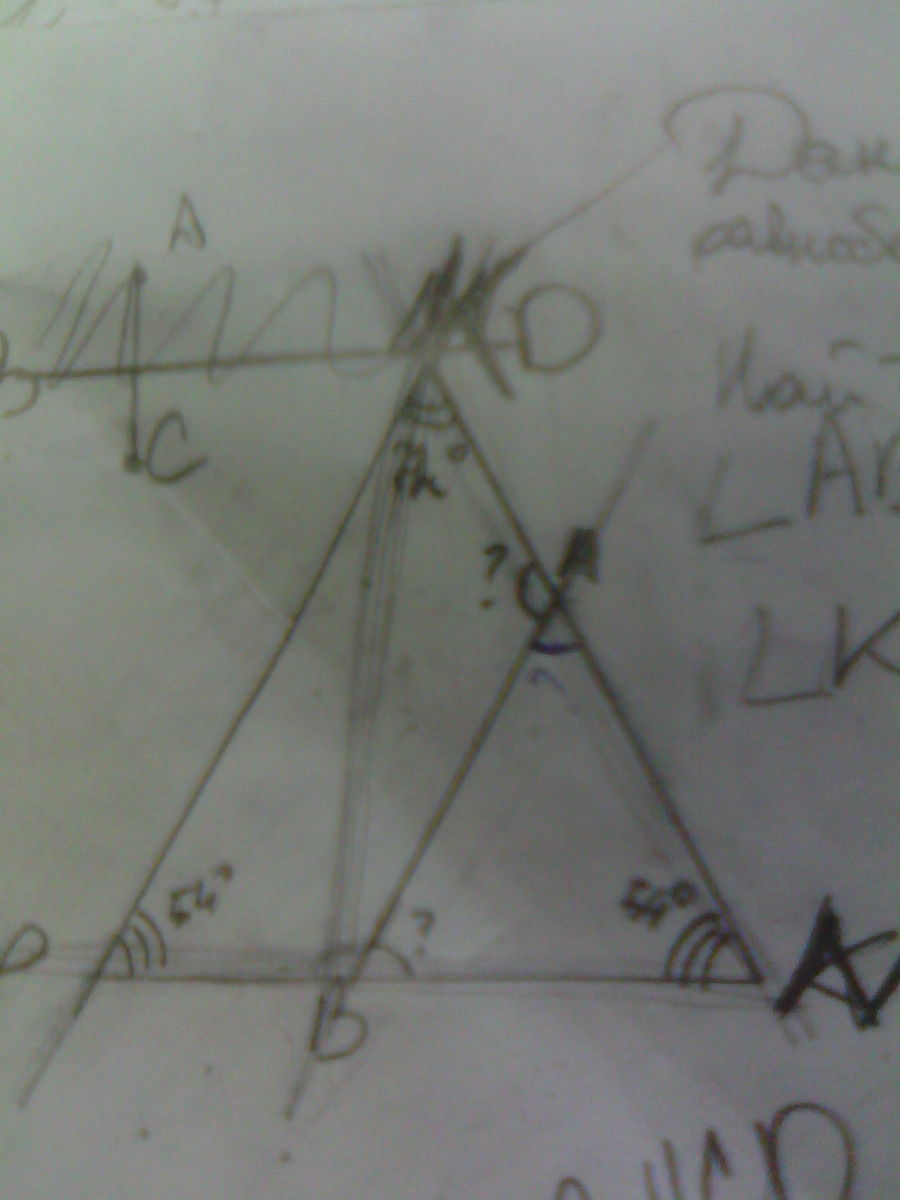 по т. о сумме внутренних углов треугольника угол МАВ =180-(72+54)=54° угол АВМ 180-(54+54)=72°