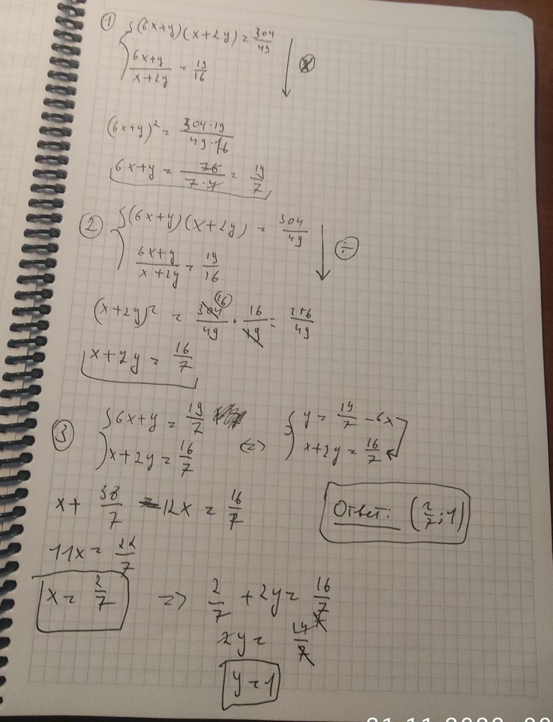 решить систему, состоящую из квадратного и рационального уравнений, метод умножения.
