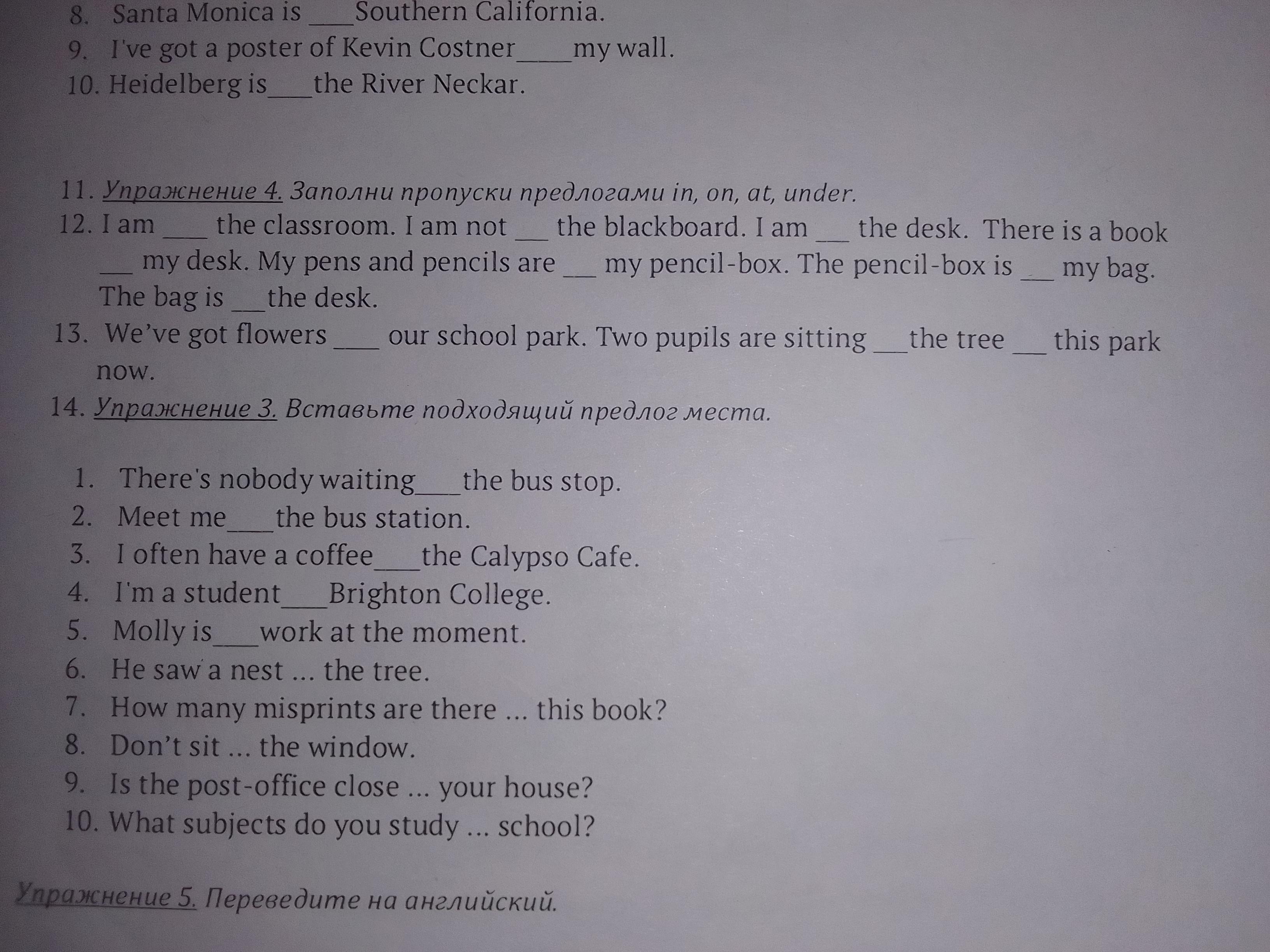 1) in 2) at 3) аt 4) on 5) in 6) in 7) under 8) in 9) under 10) in