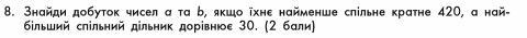 Ответ:Давайте позначимо числа як a і b. Нам відомо, що їхнє найбільше спільне кратне (НСК) дорівнює 420, а найбільший спільний дільник (НСД) дорівнює 30.