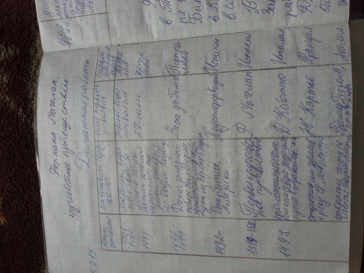 История 7 класс. Таблица "Великие географические открытия" таблица из 3 колонок: 1) Путешественники.( их 6) 2) Годы. 3) Открытые земли. ( и только не пишите типо: прочитай учебник, сама ищи, а просто кто может и знает помогите!) заранее спасибо