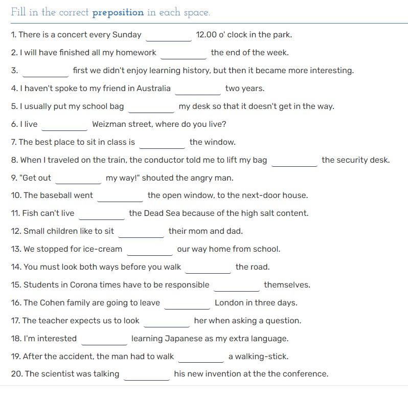 1. There is a concert every Sunday at 12.00 o' clock in the park.