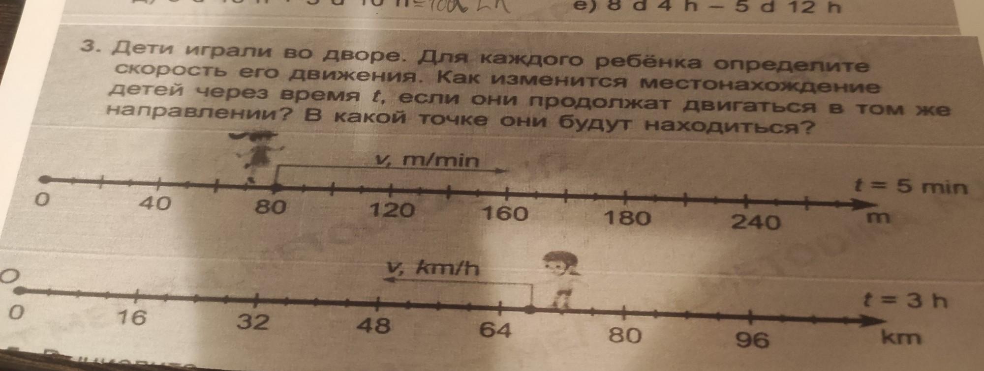 3. Дети играли во дворе. Для каждого ребёнка определите скорость его движения. Как изменится местонахождение детей через время, если они продолжат двигаться в том же направлении? В какой точке они будут находиться?