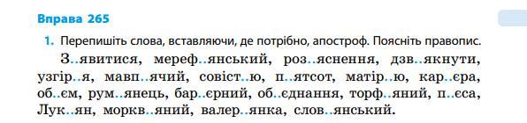 З'явитися, мереф'янський, роз'яснення, дзвякнути, узгір'я, мавпячий, совістю, п'ятсот, матір'ю, кар'єра, об'єм, рум'янець, бар'єрний, об'єднання, торф'яний, п'єса, Лук'ян, морквяний, валер'янка, слов'янський.