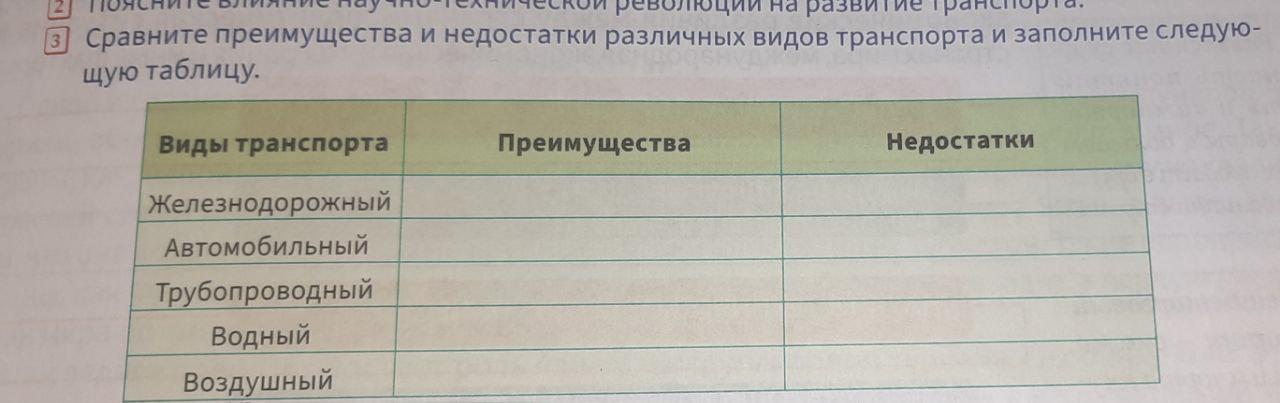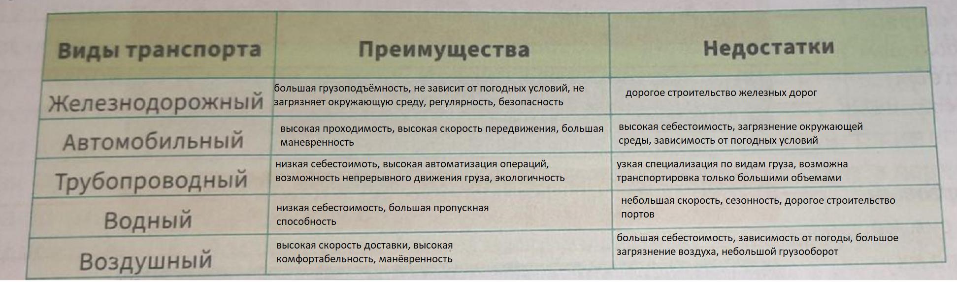 - Сравните преимущества и недостатки различных видов транспорта и заполните следующую таблицу.