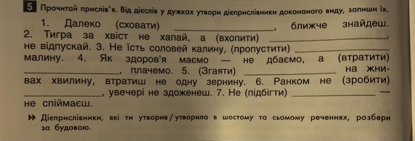 5.Прочитай прислів'я. Від дієслів у дужках утвори дієприслівники доконаного виду, запиши їх