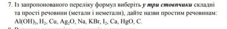 складні-Al(OH)³,H²,Ag²O,KBr,I²,HgO.