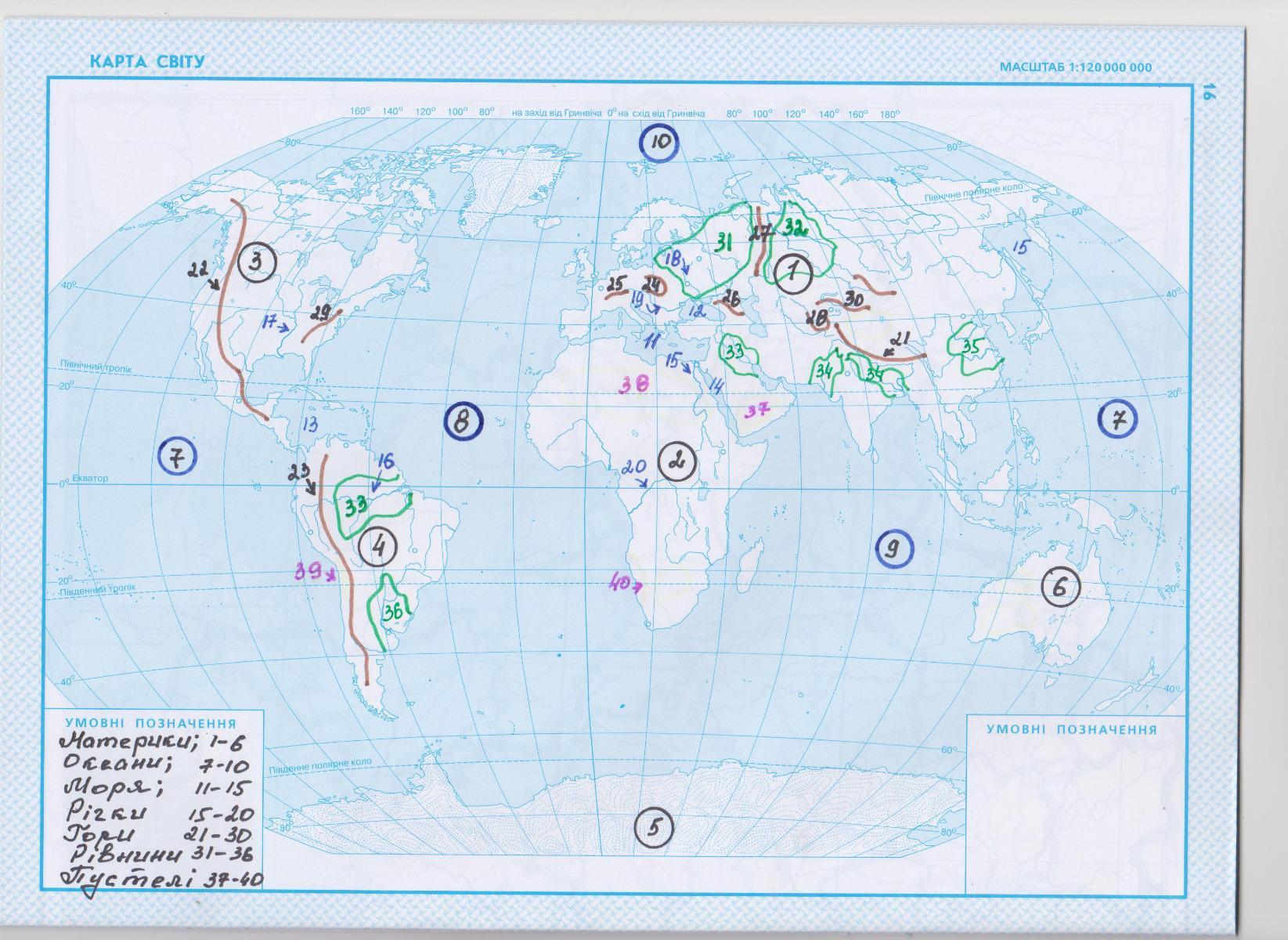 Гори : Альпи-25, Гімалаї-21, Карпати-24, Аппалачі-29, Кордильєри-22, Кавказ-26, Анди-23.