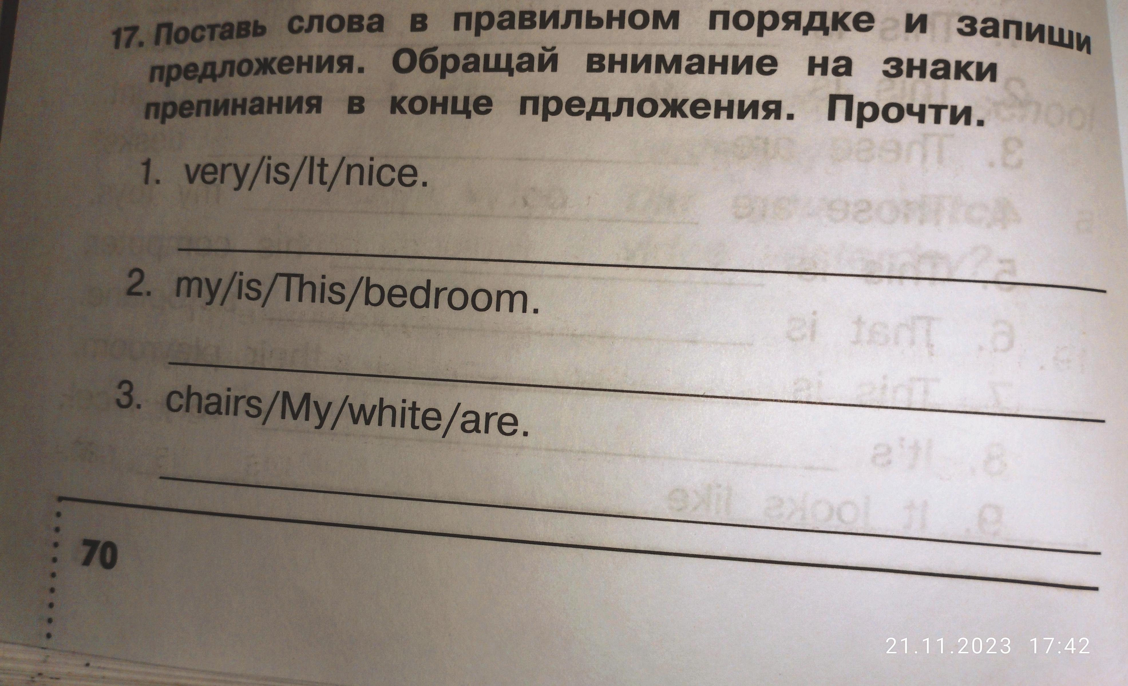 Поставь слова в правильном порядке и запиши предложения. Обращай внимание на знаки препинания в конце предложения. Прочти.