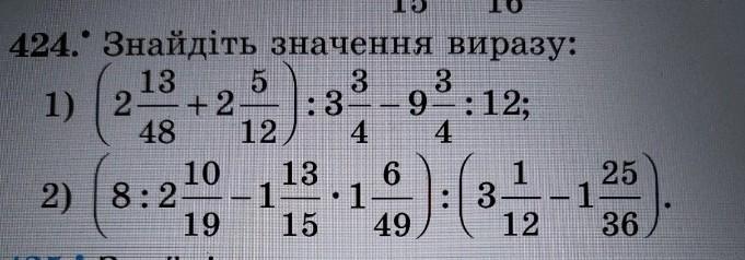424.. Знайдіть 13 2+2- 48 1) 2) 8:2- 10 19 - значення виразу: 3 5 12 :3 13 15 . - 3 9-:12; 4 6 49 : 3 1 12 - 25 36 ПОМОГИТЕ срочно