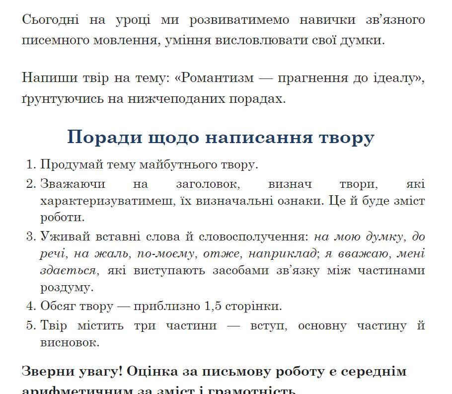 Серед ключових ознак романтичних творів – прагнення до самовираження, пошук нових форм вираження почуттів і емоцій, а також тяга до природи та внутрішнього світу людини. Ці риси визначають той ідеал, який романтики прагнули втілити в своїх творах.