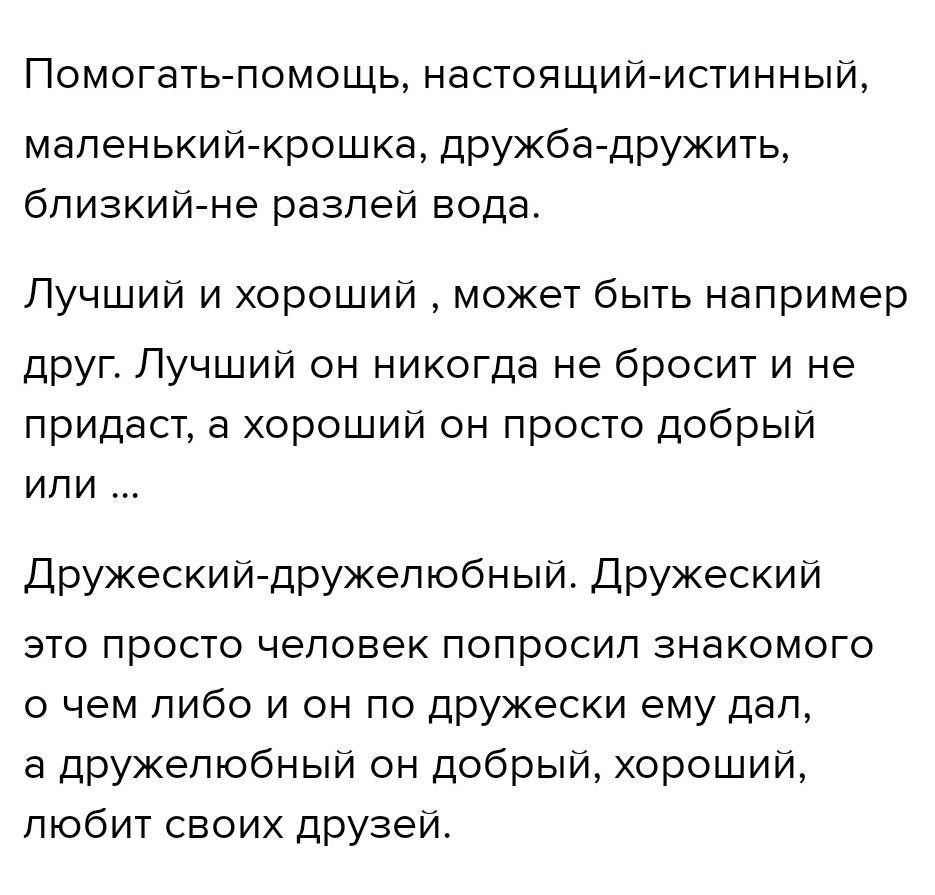 в понимаешь значени - ----- Kak T ми. Обоснуй, почему оставшиеся слова не являются синон 235А. Выпиши пары слов, которые являются синонима мами. Какой признак этих слов не соответствует синонимам Помогать помощь, настоящий (друг) - хороший (друг), маленький дружелюбный, дружба - дружить, близкий (друг) - не разлей вода. другой ты? истинный, лучший крошка, дружеский