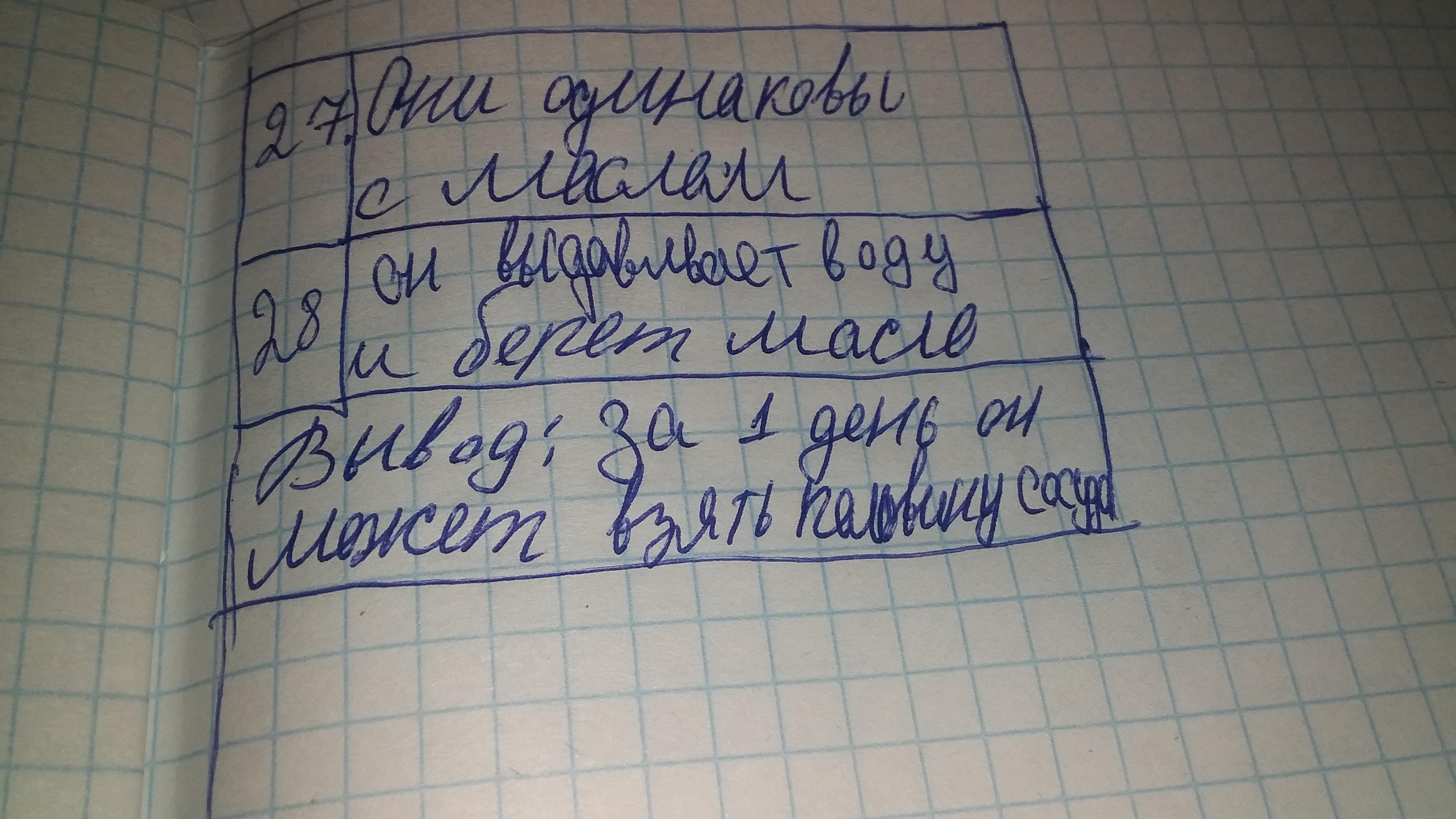 Поместите два зеленых побега разных растений в стеклянный сосуд с водой сверху залейте небольшим количеством масла. Отметьте уровень воды. Обратите внимание на сколько уровень воды в стеклянном сосуде упадет за один день. Определить сколько воды испаряют побеги за сутки. Побеги какого растения испаряет больше воды? Оформите результат исследования в виде таблицы 6г 19шк