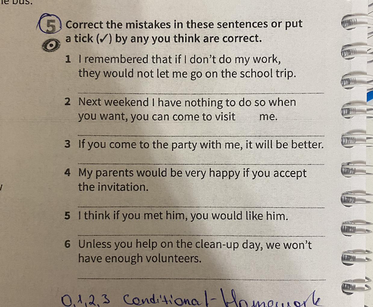 1. I remembered that if I didnt do my homework, they would not let me go on the school trip.