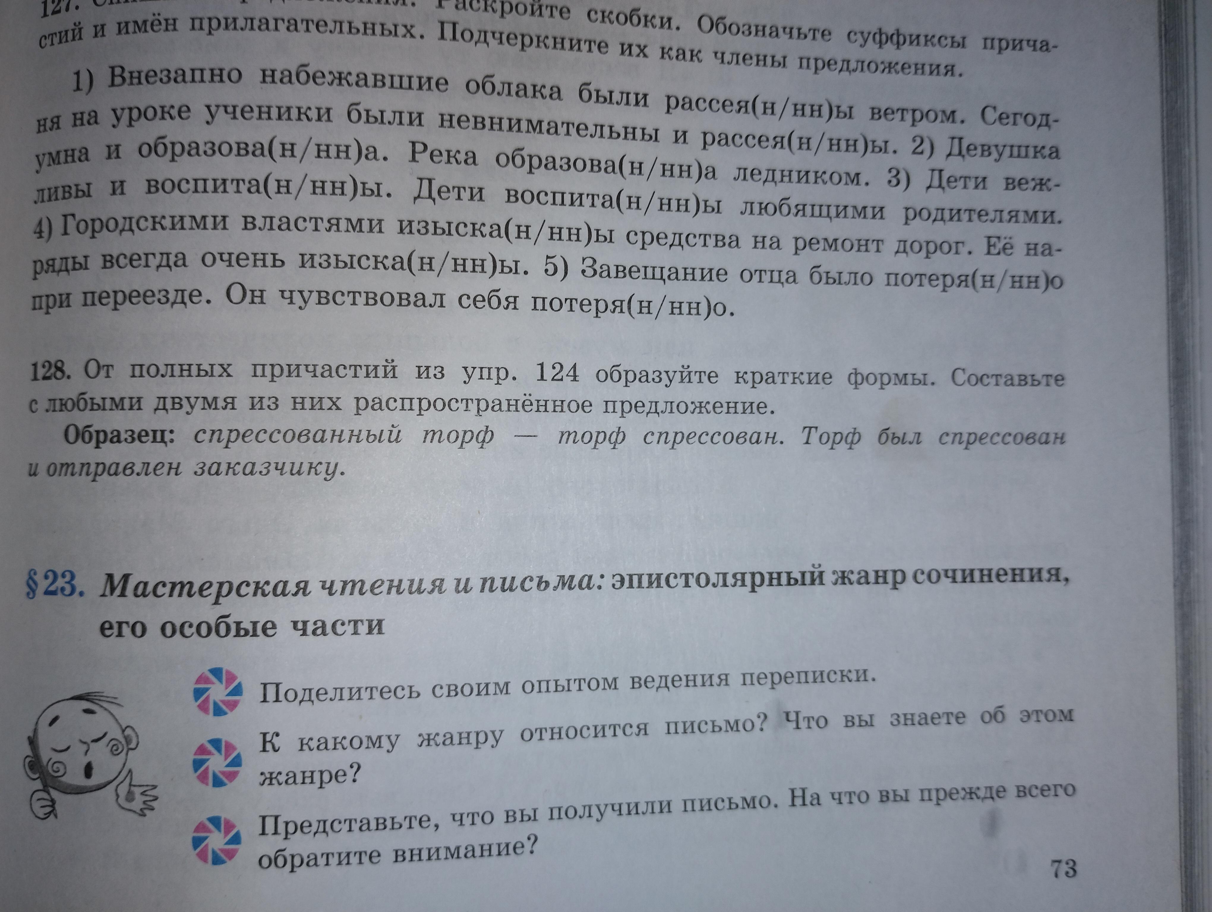Упр 128 от полных причастий из упр. 124 образуйте краткие формы. Составьте с любыми двумя из них распространённое предложение