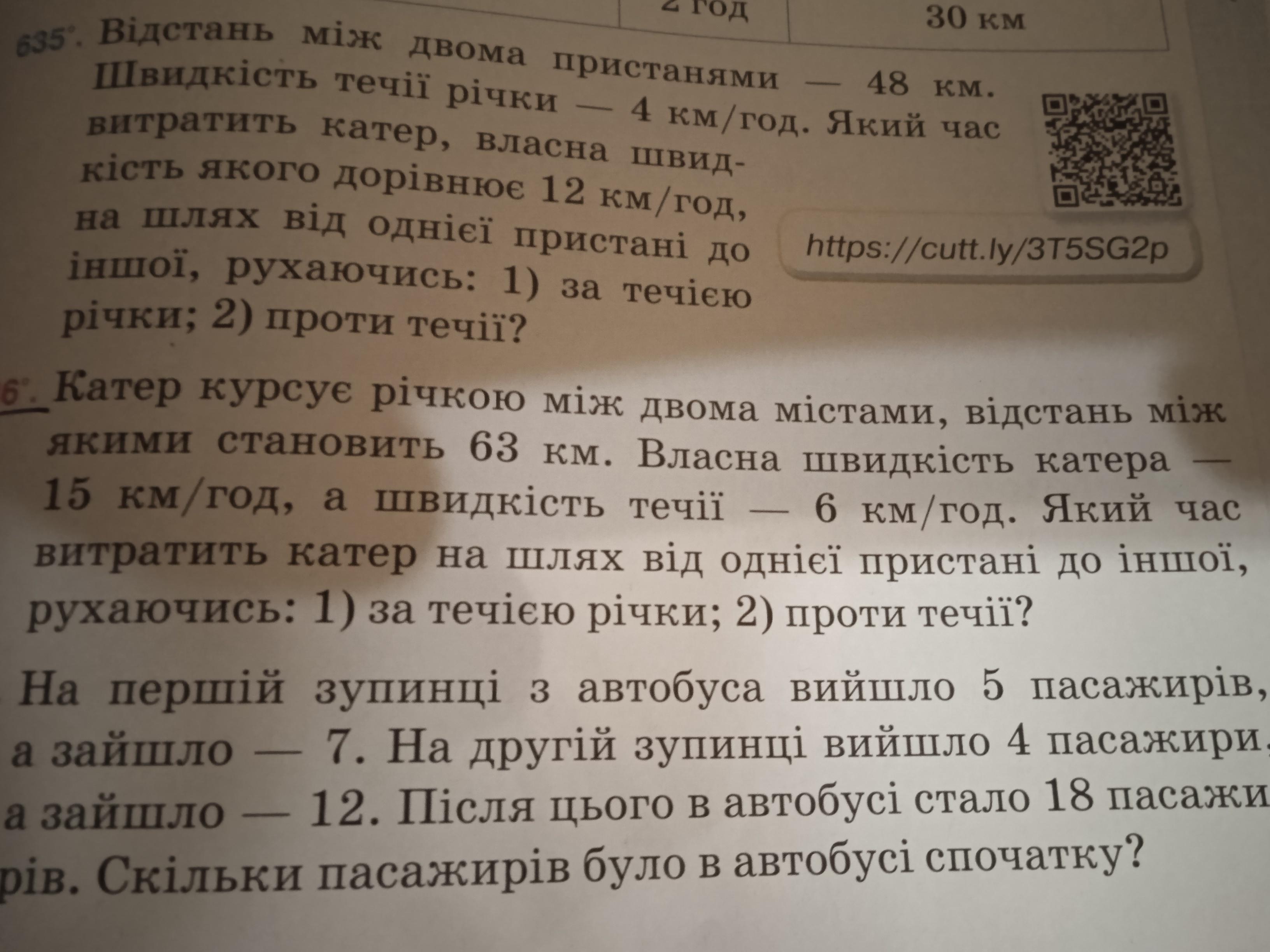 Катер курсує річкою між двома містами відстань між якими становить 60 км. Власна швидкість катера 15 км/год а швидкість течії 6 км/год. Який час витратить катер на шлях від однієї пристані до іншої ,рухаючись : за течією річки ,проти течії?