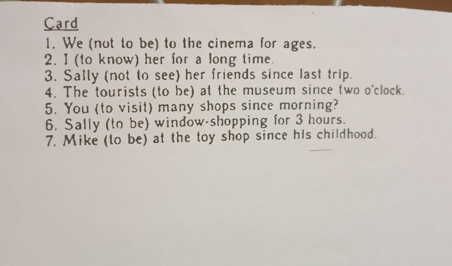 6. Sally (to be) window-shopping for 3 hours.