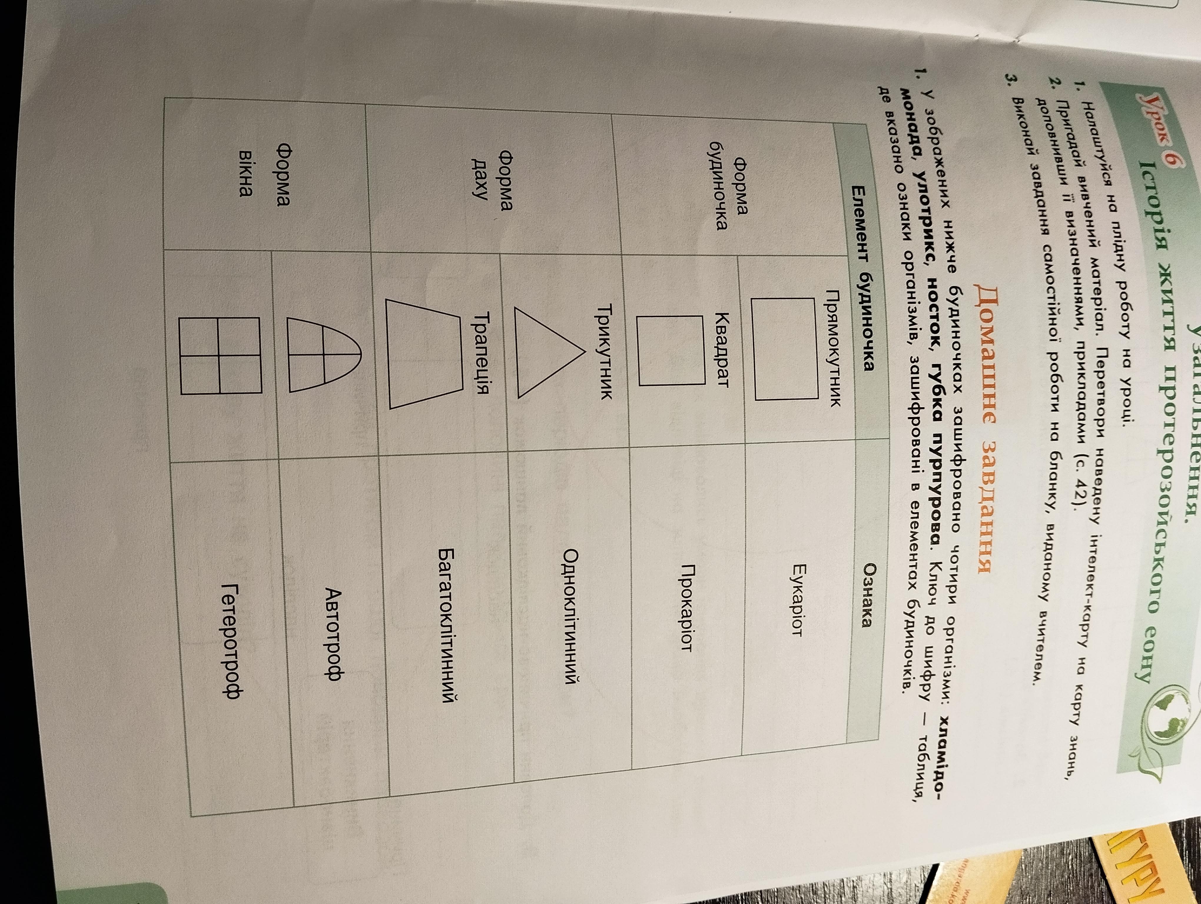 - "Улотрикс" – це еукаріот з квадратною формою будиночка та ознакою "Автотроф".