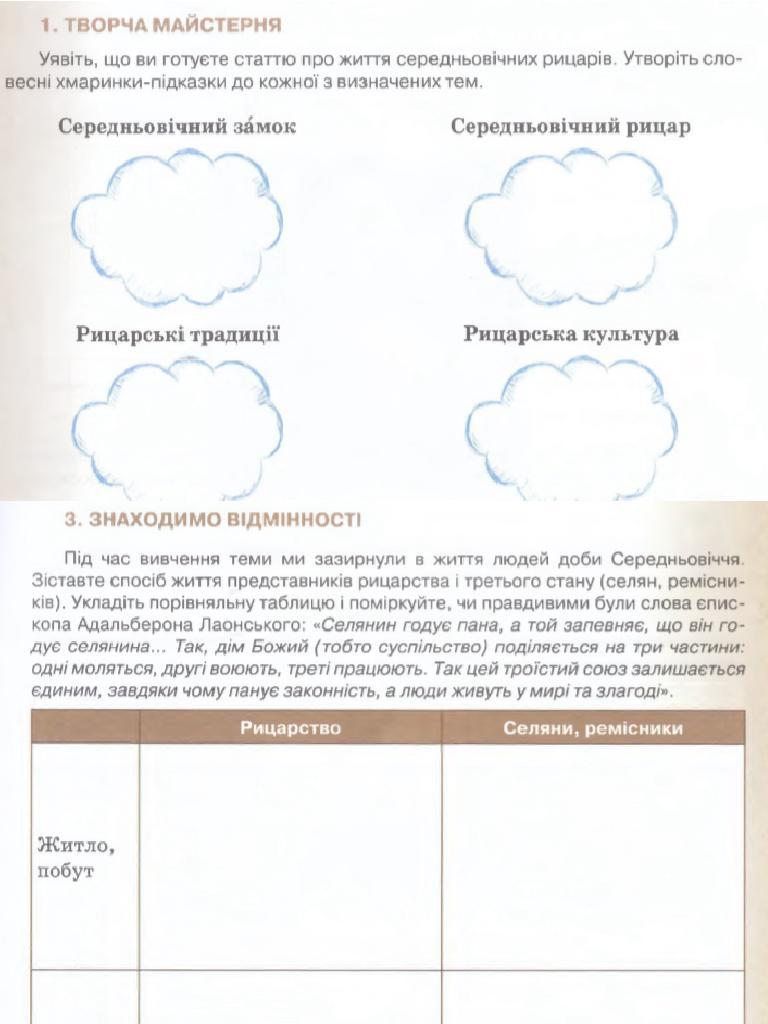 Ответ:1. (Середньовічний замок) великий простір-житло середньовіччя з оборонними, господарськими, культовими. звичайно оточене високим кам'яним муром з кількома вежами.