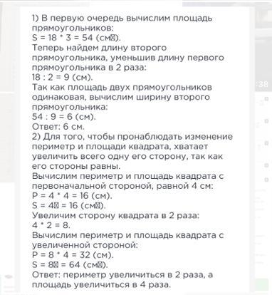 а)Два прямоугольника имеет одинаковую площадь .Длина первого 18 см, ширина 3 см. Найди ширину второго прямоугольника