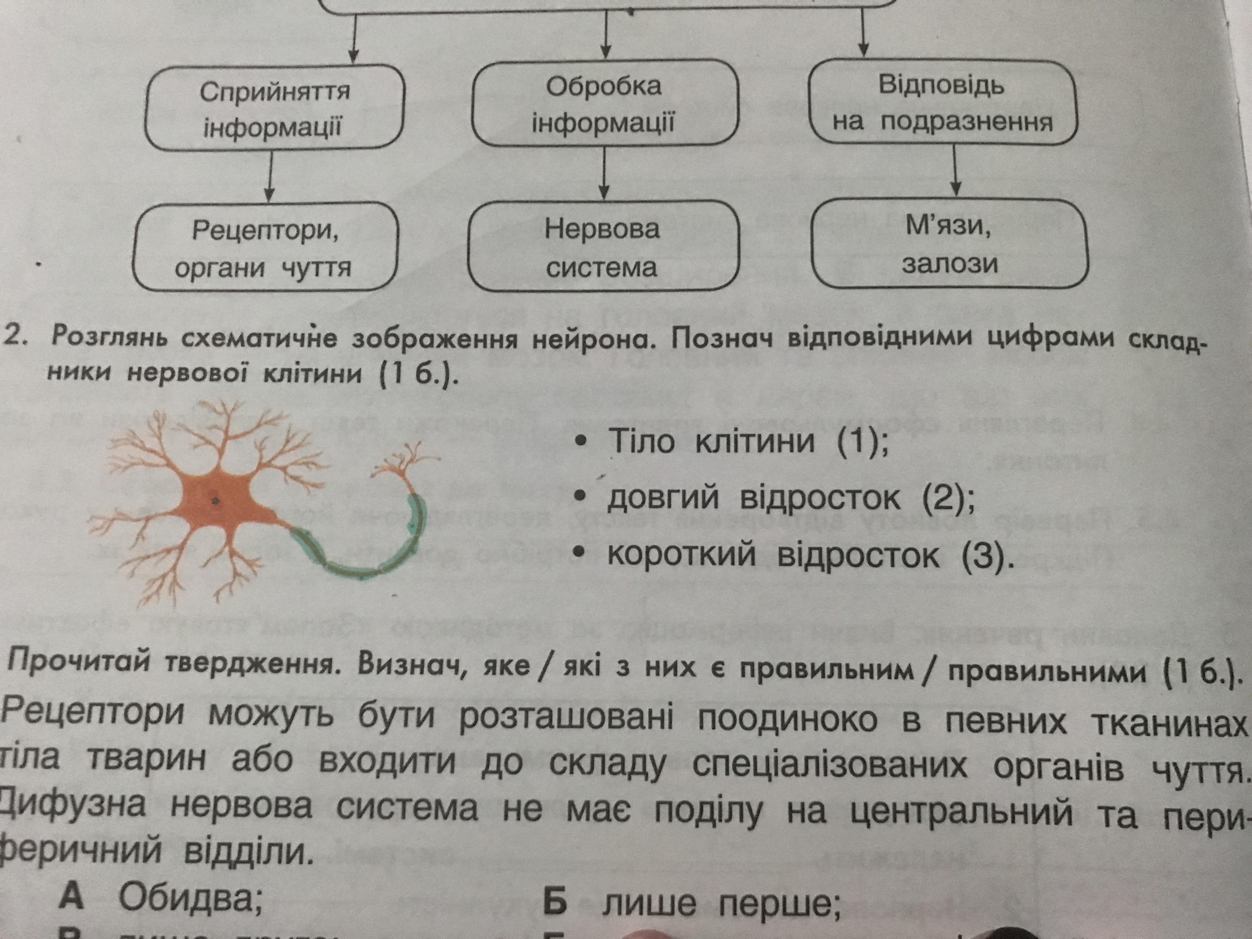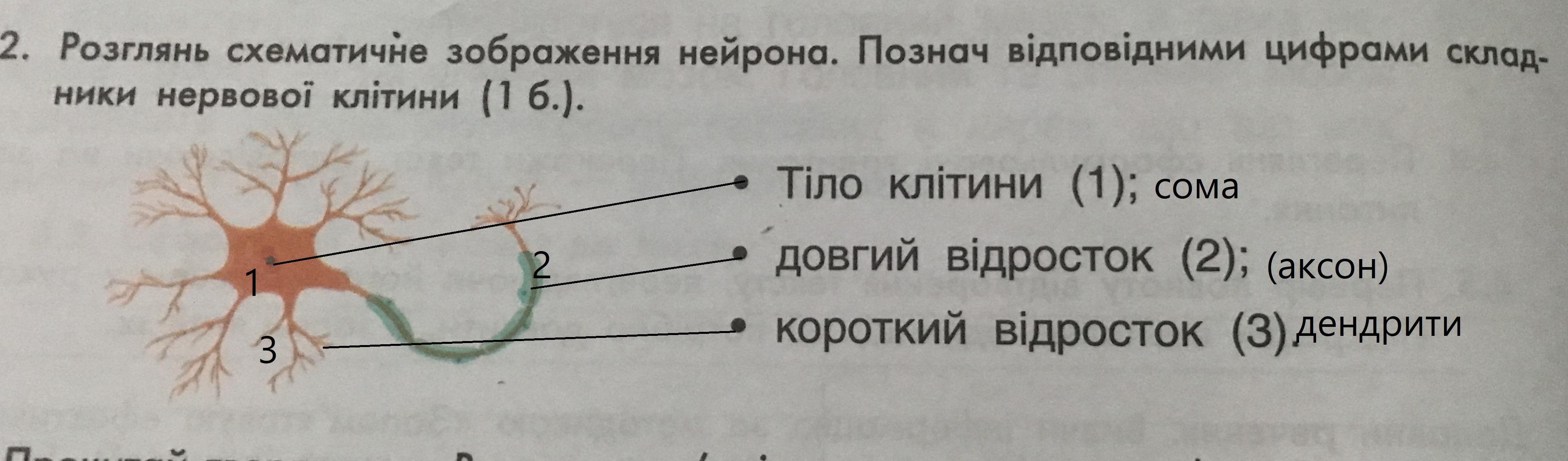 розгляньте схематичне зображення нейрона познач відповідними цифрами складники нервової клітини