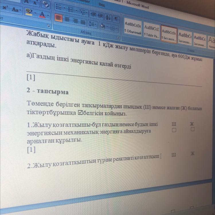 Теменде берілген тапсырмалардан шыңдық (Ш) немесе жалған (ж) болатын