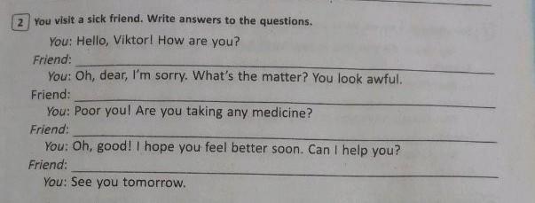You visit a sick friend. Write answers to the questions.