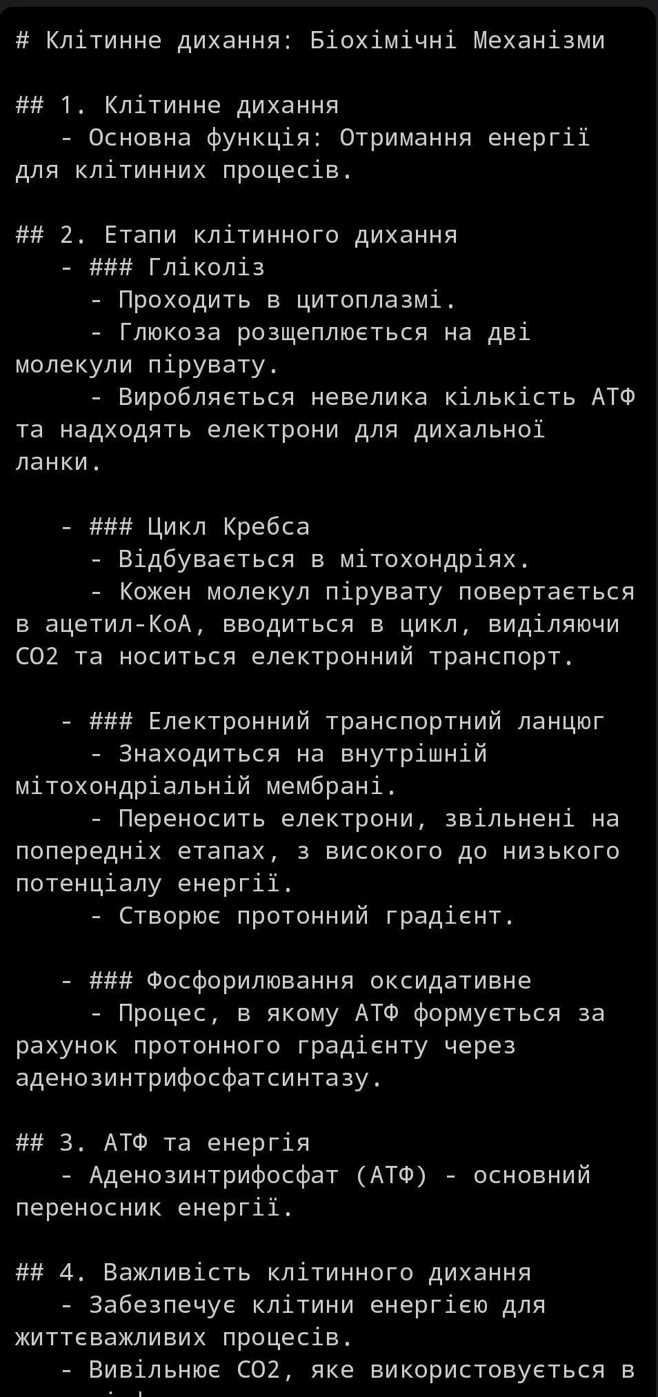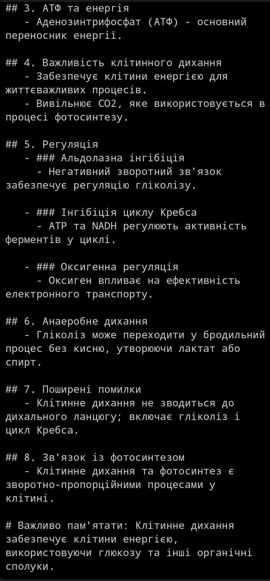 Ця інтелект-карта надає структурований огляд біохімічних механізмів клітинного дихання та його ключових аспектів.