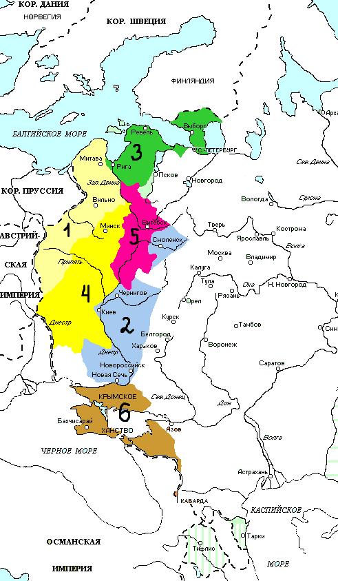 территориальных приобретений России за 17 – 18 века. Все они обозначены