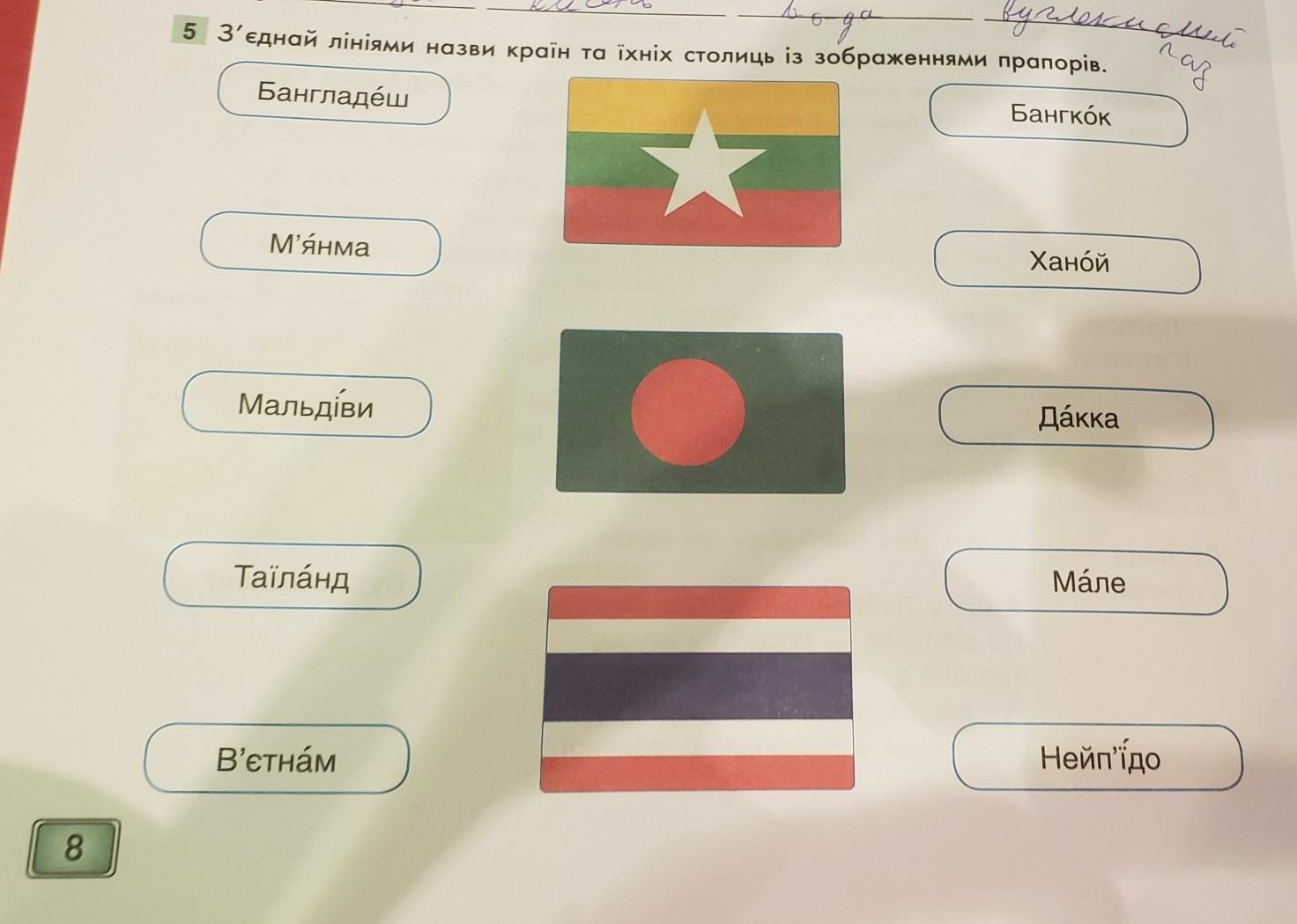 5. З'єднай лініямм назви країн та їхніх столиць із зображеннями прапорів. ДОПОМОЖІТЬ БУДЬ ЛАСКА