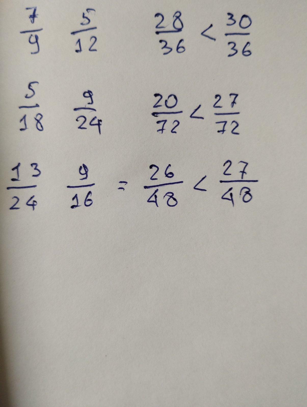 5/18 и 9/24 => 20/72 < 27/72