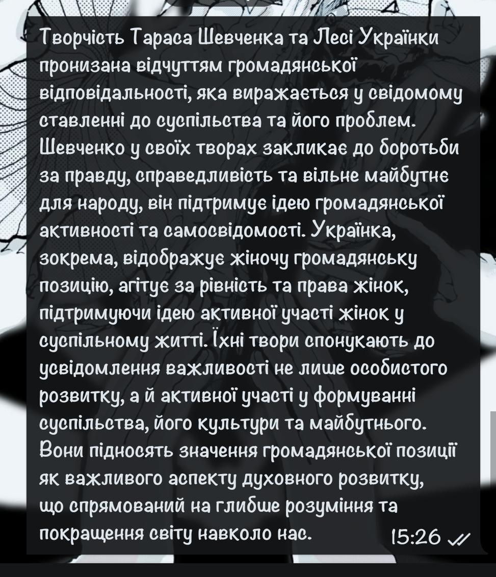 Усвідомлення громадянської позиції людини як одного з проявів духовності (за творами Т. Шевченка та Лесі Українки)