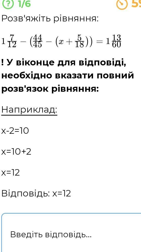 1 7/12 - (44/45 - (х + 5/18)) = 1 13/60