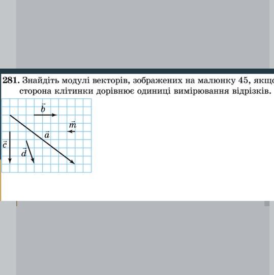 281. Знайдіть модулі векторів, зображених на малюнку 45, якщс