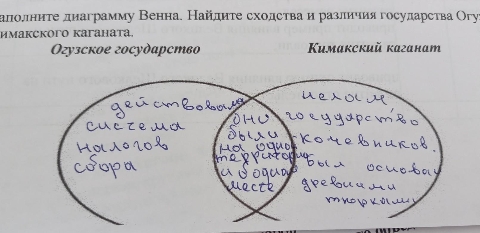 помооооооогииитеее, Заполните диаграмму Венна. Найдите сходства и различия государства Огузов и Кимакского каганата Даю 30 Баллов