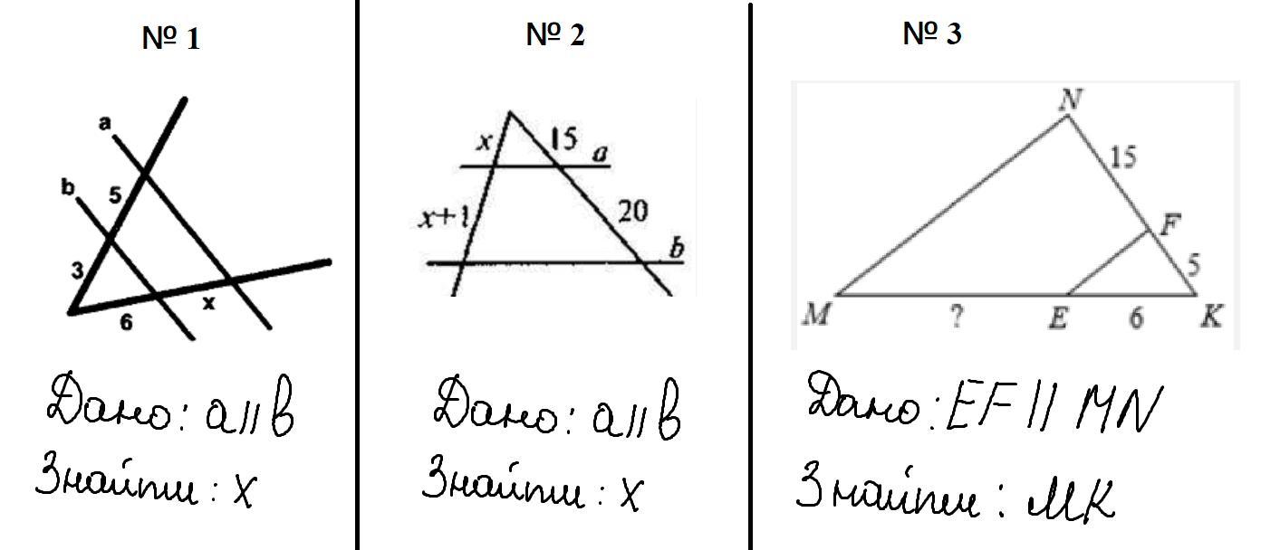 1) Теорема Фалеса (перемножить накрест) 3х=5*6; х=10
