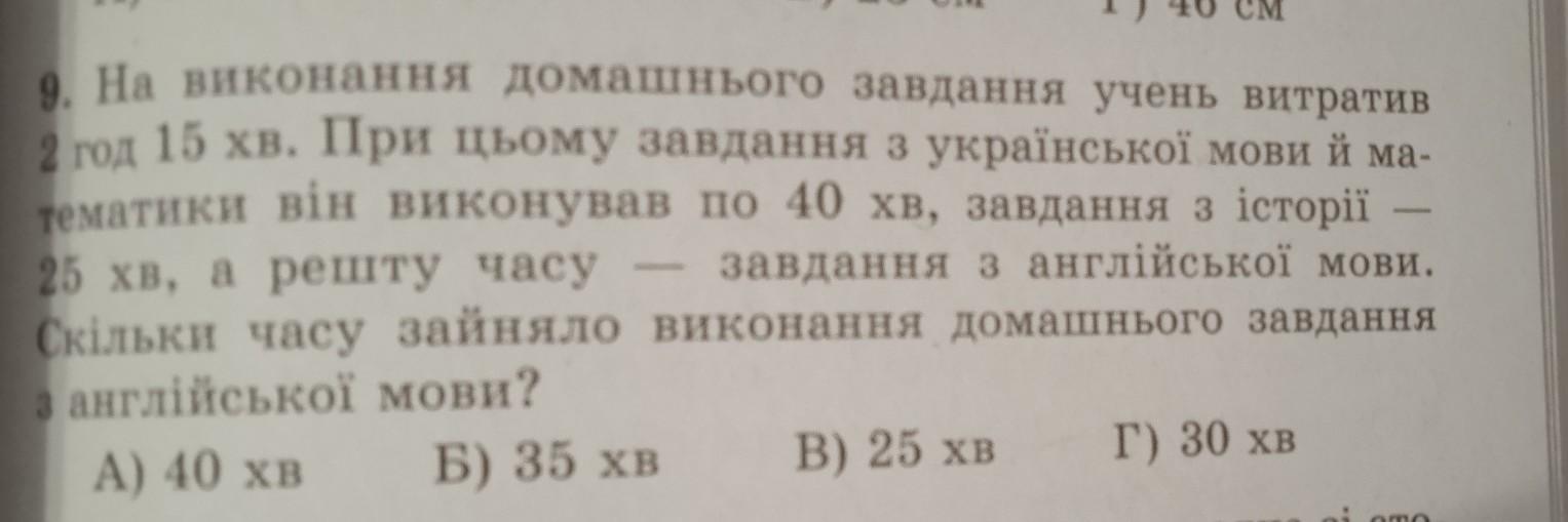 Варіант Г буде правильний, 30 хвилин учень робив завдання з Англійської мови.