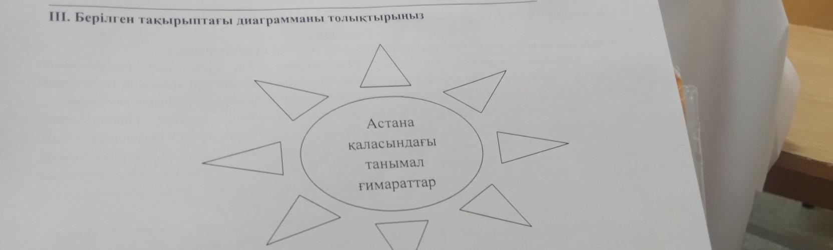 III. Берілген такырыптагы диаграмманы толыктырыныз Астана каласындагы танымал гимараттар