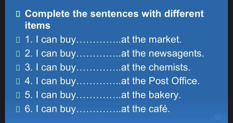 5)I can buy bread at the bakery.
